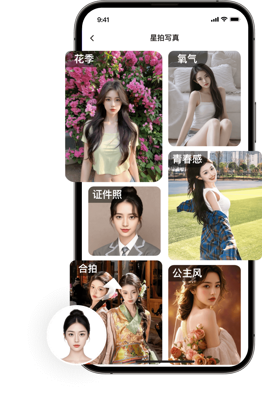从甜美时尚到经典民族,从优雅旗袍到浪漫婚纱,再到帅气男神和时尚证件照……美影为你提供丰富多样的风格模板。一键换装,轻松演绎多面风采,发现不一样的自己。快来开启你的个性化写真之旅!